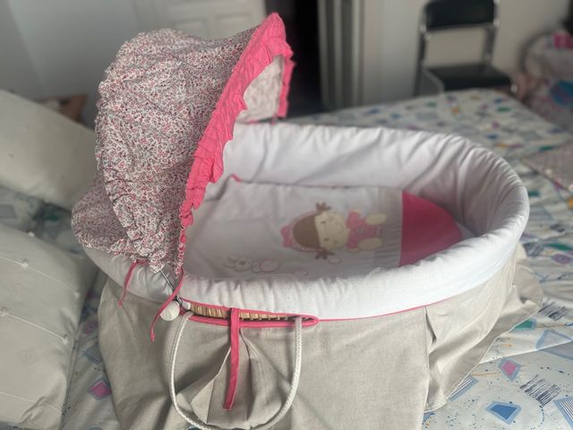 Detalles del productomoisés bebé con capota (desmontable) . 80cm . Con colchón y edredón y asas para transportar Medidas del producto