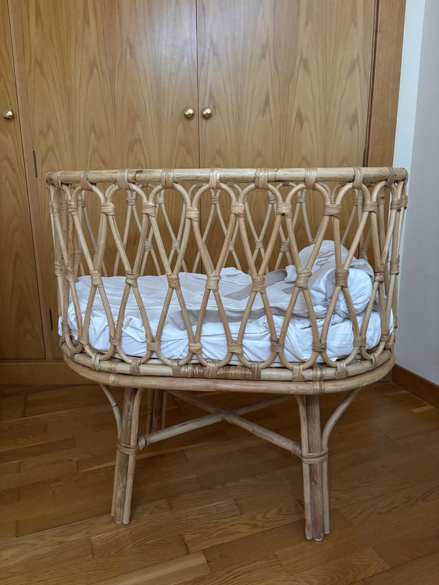 Precioso moisés de mimbre para bebé, ideal para los primeros meses. Se encuentra en perfecto estado. Incluye colchón.