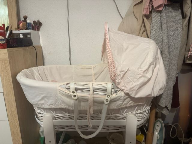 Detalles del productoMoisés de mimbre blanco para bebé, en perfecto estado. Incluye colchoncito. Es ligero y fácil de transportar gracias a sus asas. Ideal para los primeros meses del bebé.