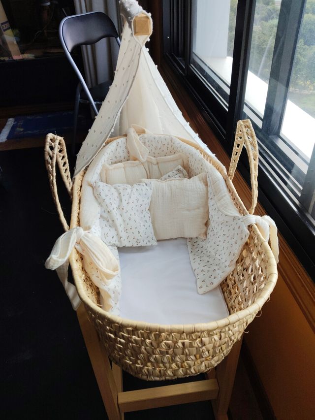 Detalles del productoCuna Moisés de mimbre para bebé reborn, ideal para muñecas. Es una pieza encantadora y delicada.