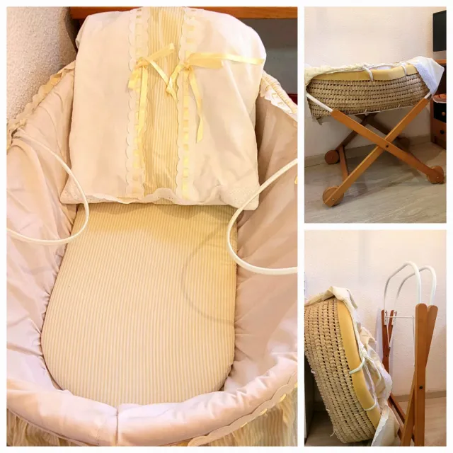 Moisés para bebé. Mimbre y madera
