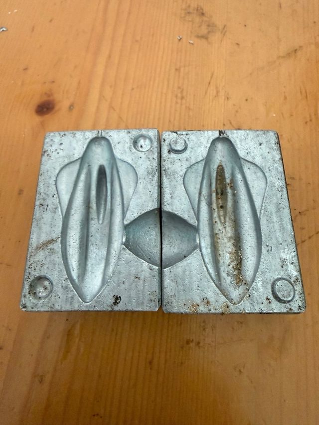 Molde de fundición de plomo para pesca, modelo argentino. - Capacidad para 125 gramos. - Fabricado en metal resistente.