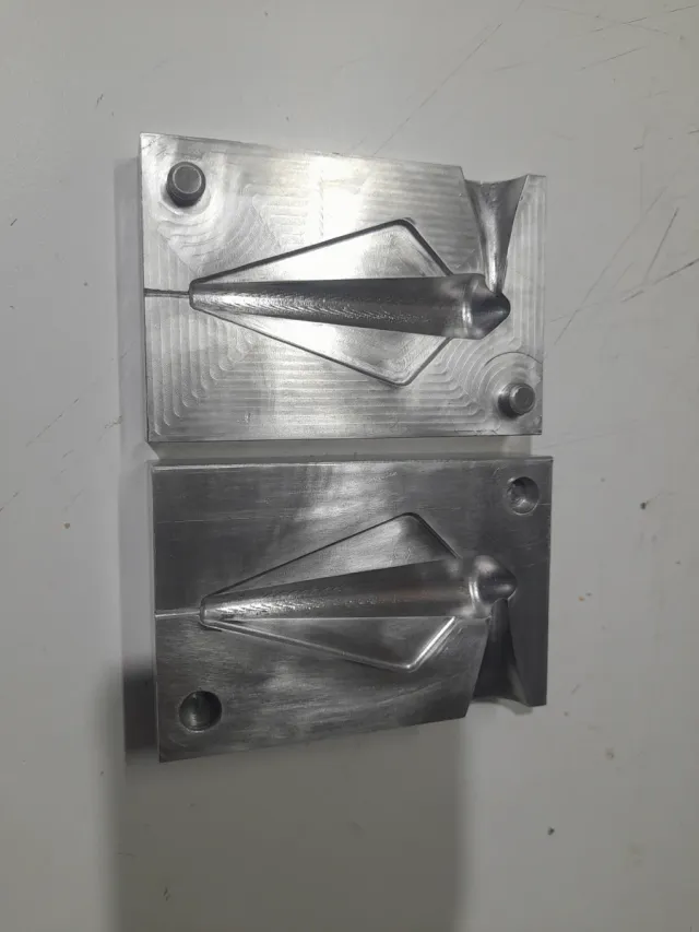Detalles del productoMolde de aluminio para la fabricación de plomos de pesca, fabricado en centro de mecanizado cnc.