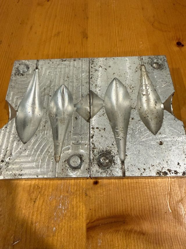 Molde para la fabricación de plomos de pesca de estilo portugués. - Diseñado para plomos de 100 y 120 gramos. - Fabricado en metal resistente.