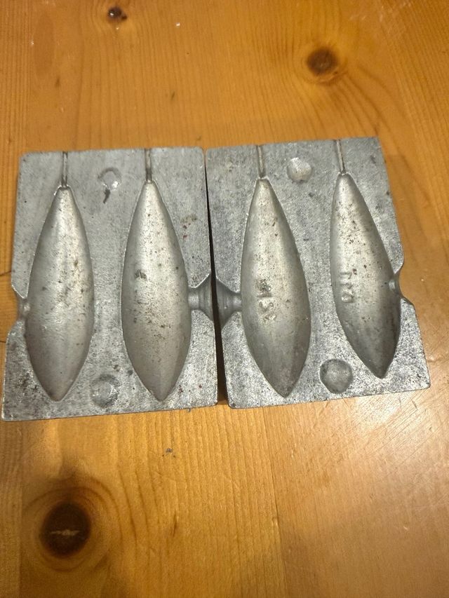 Molde para la fabricación de plomos de pesca. Fabricado en España. - Capacidad para 4 plomos. - Peso aproximado por plomo: 113-120 gramos.