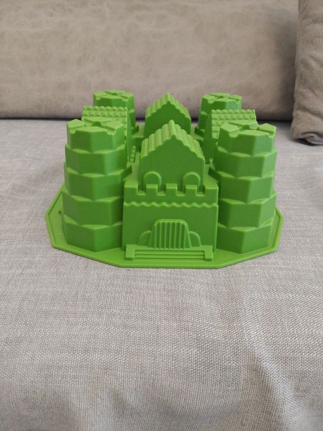 Detalles del productoPreciosa molde de silicona con forma de castillo, para hacer tartas, ideal para repostería creativa. Es de color verde y tiene un diseño encantador. Mide 25 cm. Hondo 10 cm.