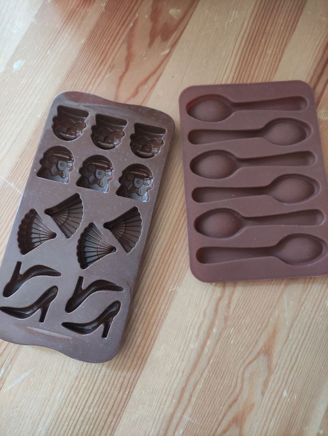 Dos moldes de silicona, para hacer bombones y cucharitas de chocolate