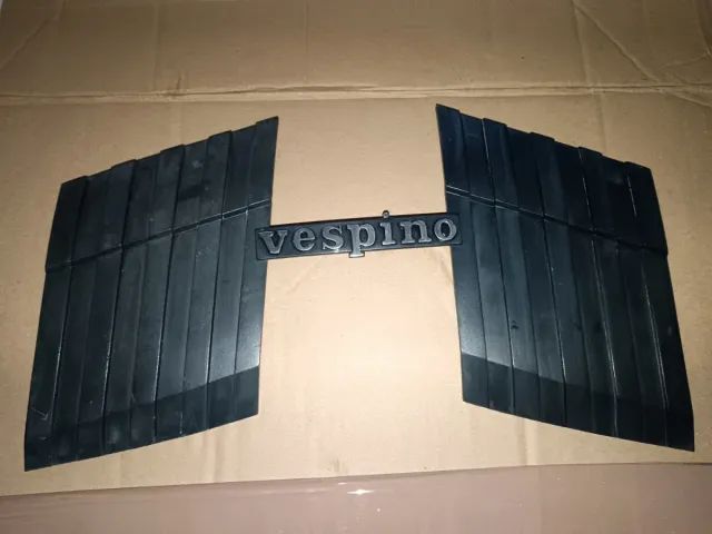 Juego de molduras para tapas laterales de Vespino. - Incluye dos molduras para ambas tapas laterales y logo vespino. Enganches en buen estado, sin roturas.