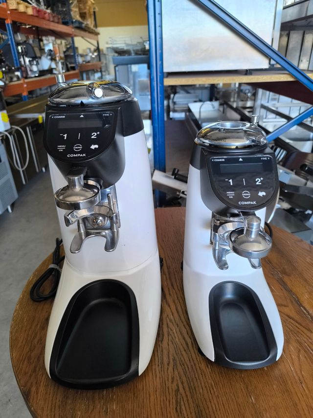 Detalles del productoMolinillo de café Compak, en perfecto estado. Es de color blanco y negro, con un diseño elegante y moderno.