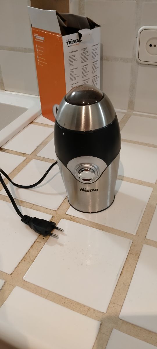 Molinillo de café eléctrico Tristar KE-2910, en perfecto estado solo lo he utilizado un par de veces. Lo vendo por mudanza. Es pequeño y fácil de usar. De acero inoxidable.