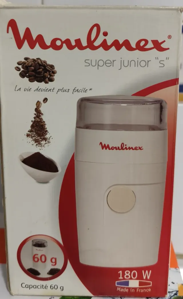 Detalles del productoMolinillo de café Moulinex Super Junior s en color blanco. Ideal para preparar café recién molido.