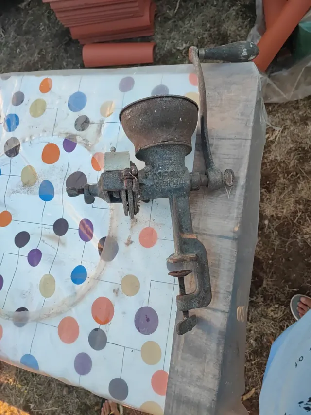 Detalles del productoMolinillo de grano antiguo, ideal para coleccionistas o para uso decorativo.