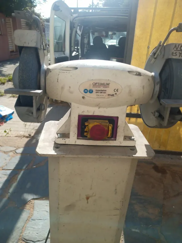 Molinillo de banco marca OPTIMUM. - Modelo: OPTI SM 200. - Fabricado en Alemania. - Incluye dos muelas. - Interruptor de seguridad rojo.
