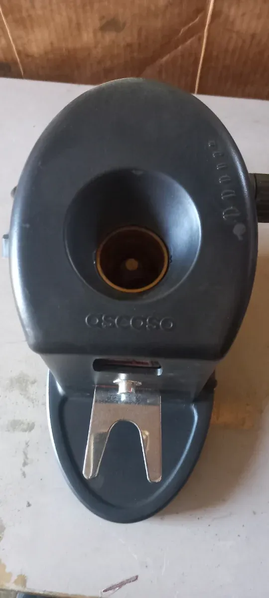 Molino de café de la marca Ascaso. Diseño ovalado en color negro con detalles metálicos. No tengo el bol de arriba