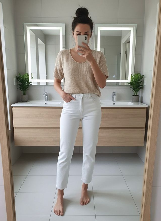 Mom Jeans Tiro Alto Blanco Roto Talla 38