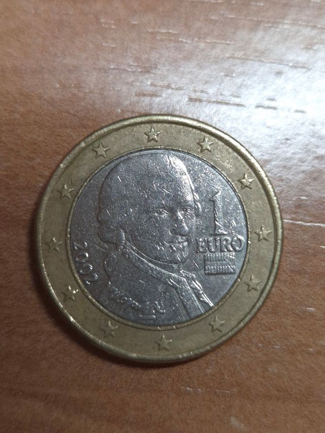 Monedas de 1 euro de Austria con la imagen de Mozart, acuñada en el año 2002. - Se encuentra en buen estado. - Ideal para coleccionistas.