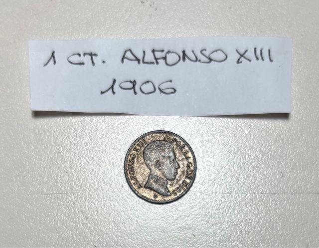 Detalles del productoMoneda de 1 céntimo de Alfonso XIII acuñada en el año 1906.