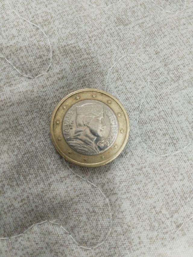 Moneda de 1 euro. - Diseño conmemorativo. - Borde exterior dorado. - Centro plateado con figura.