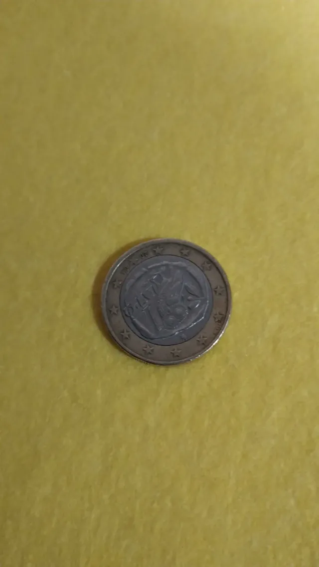 Moneda de un euro con el diseño del búho. Alrededor más gordo y más fino en defecto .