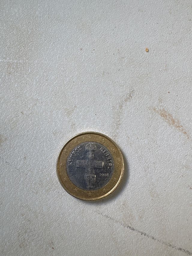 Moneda de 1 euro de Chipre conmemorativa del año 2008. Presenta un diseño distintivo.