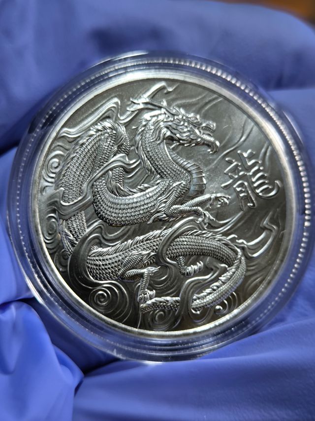 Detalles del productoMoneda 1 Onza de Plata Dragón chino, Diseñado por el Distinguido Grabador británico Jody Clark.