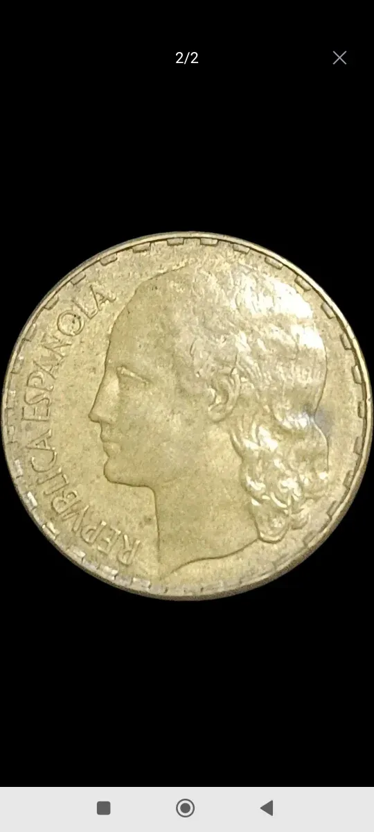 Detalles del productoMoneda de 1 peseta de 1937 de la República Española. Presenta un perfil de mujer en el anverso.