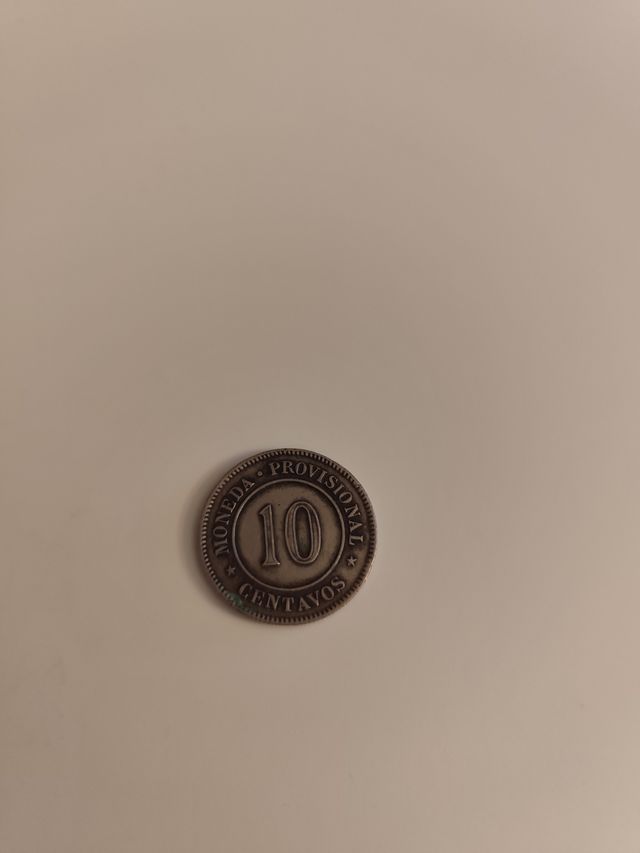 Moneda de 10 centavos de la República Peruana, acuñada en 1880. - Diseño: Moneda Provisional - Valor: 10 Centavos - Año: 1880