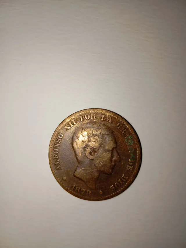 Detalles del productoMoneda de 10 céntimos de Alfonso XII, acuñada en el año 1878.
