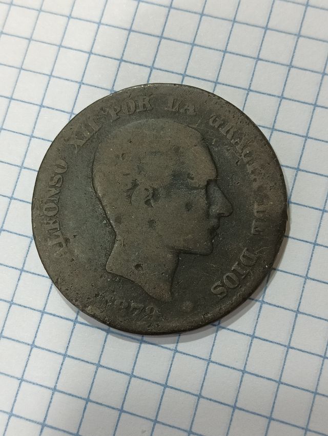 Preciosa moneda de 10 céntimos de Alfonso XII, acuñada en 1879. Se encuentra en buen estado de conservación