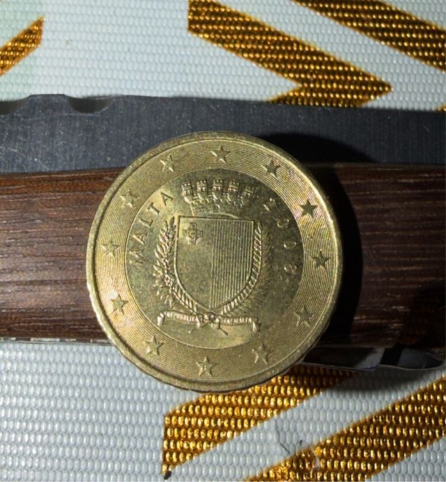 Moneda de 10 céntimos de Malta del año 2008. - Diseño con el escudo de Malta. - Borde con estrellas y el año. - Acabado en color dorado.