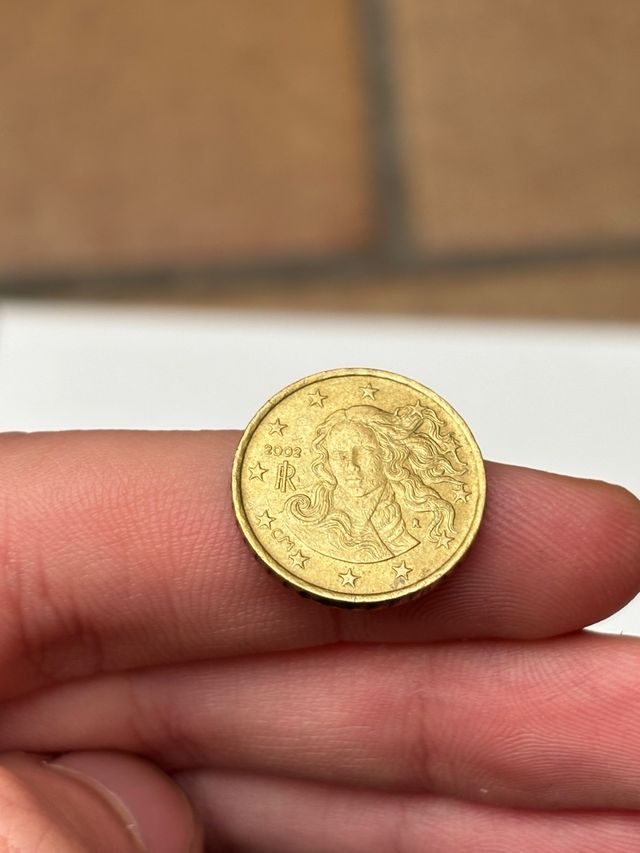 Rara moneda de 10 céntimos de euro con la imagen de Venus de Botticelli. - Año de acuñación: 2002. - Diseño: Venus de Botticelli.
