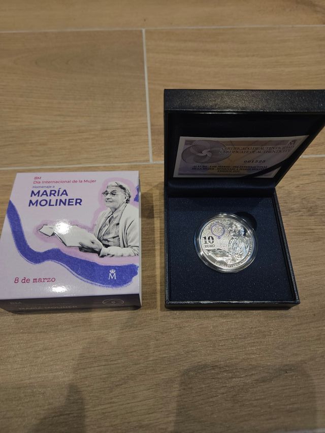 Detalles del productoMoneda conmemorativa de 10 euros en plata dedicada a María Moliner en el Día Internacional de la Mujer.