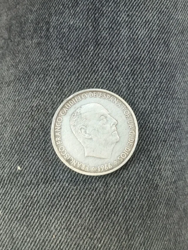 Detalles del productoMoneda de 100 pesetas del año 1966. Presenta el perfil de Francisco Franco.