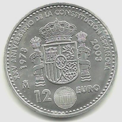 Moneda 12 Euros España 2003 XXV Aniversario Consti