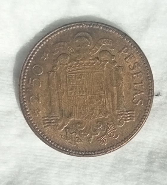 Moneda de 2.50 pesetas de España, acuñada en el año 1953.estrella 56 - Diseño con escudo. - Inscripción PESETAS y 250.(MIRA MI PERFIL)