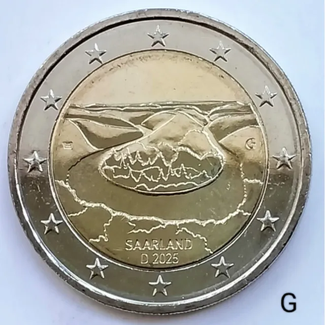 Moneda conmemorativa de 2 euros de Alemania, conmemorando el estado de Saarland y el año 2025.