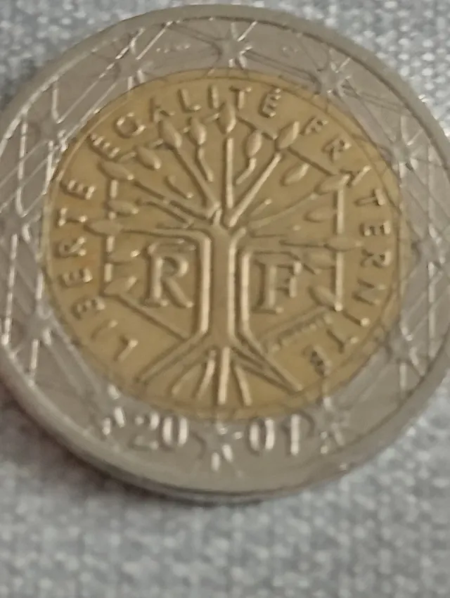 Moneda de 2 euros con diseño del árbol de la vida. - Diseño: Árbol de la vida. - Inscripción: Liberté Égalité Fraternité. - Año: 2001. - País: Francia (RF).