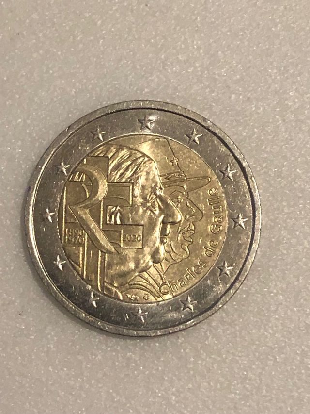 Detalles del productoSe ofrece moneda conmemorativa de 2 euros dedicada a Charles de Gaulle. Es una moneda en buen estado.