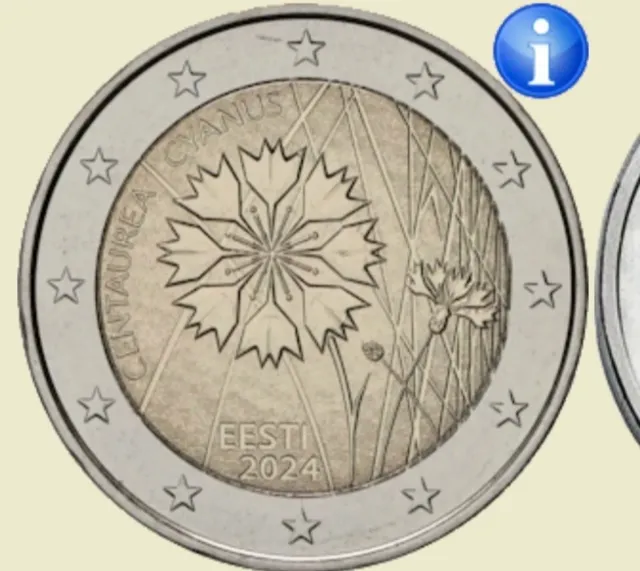 Detalles del productoMoneda conmemorativa de 2 euros de Estonia del año 2024 sin circular. Presenta un diseño floral.