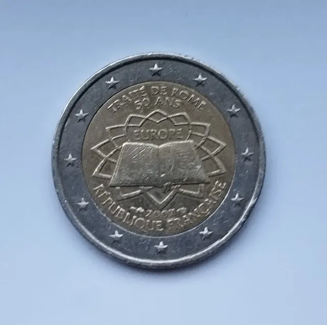 Moneda conmemorativa de 2 euros de Francia del año 2007. Conmemora el 50 aniversario del Tratado de Roma.