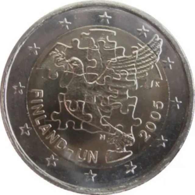 Moneda conmemorativa de 2 euros de Finlandia del año 2005. 60 aniversario de la fundación de las NNUU y 50 de la adhesión de Finlandia