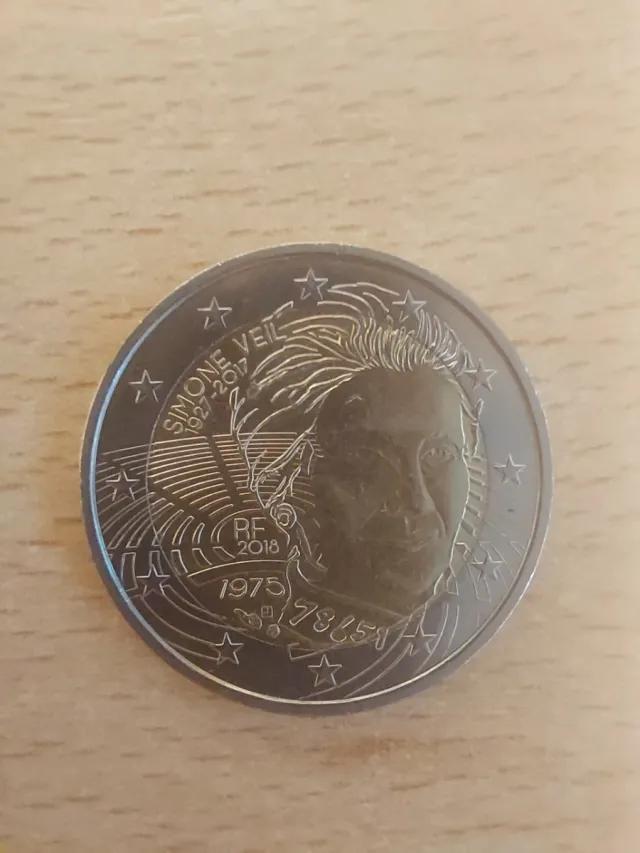 Moneda conmemorativa de 2 euros de Francia del año 2018. - Diseño dedicado a Simone Veil. - Incluye las fechas 1927-2017. - Grabado RF y 1975.