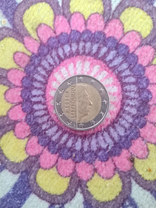 Moneda de 2 euros de Luxemburgo conmemorativa del año 2002. - Diseño de la cara nacional de Luxemburgo. - Borde con estrellas y texto LUXEMBOURG.