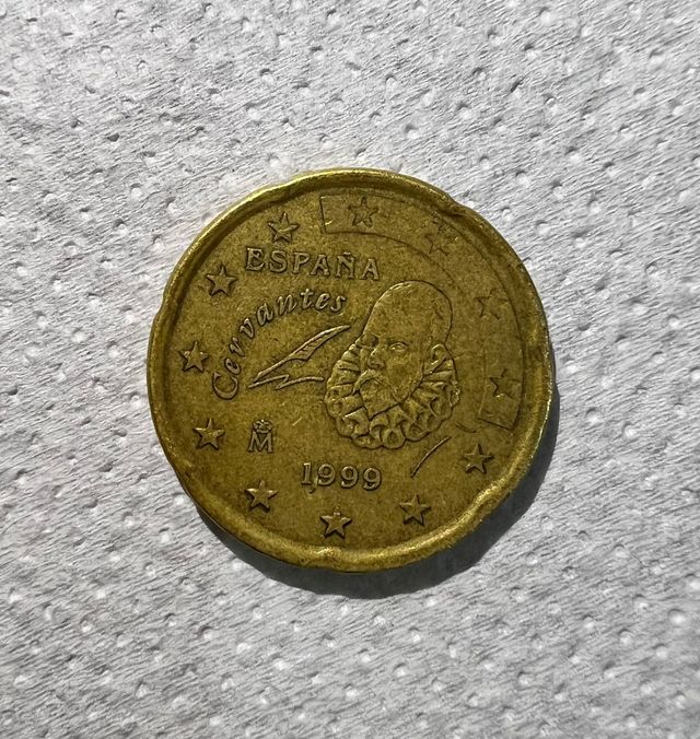 MONEDA 20 CENTIMOS DE EURO ESPAÑA 1999 CON FALLO EN EL OJO