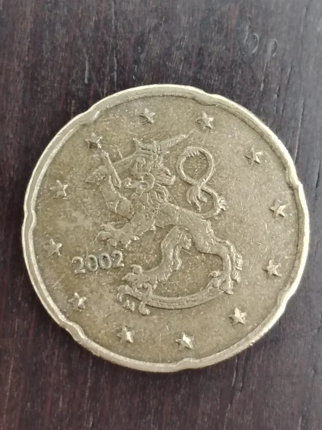 Detalles del productoMoneda de 20 céntimos de Finlandia, acuñada en el año 2002. Presenta el diseño nacional de Finlandia.