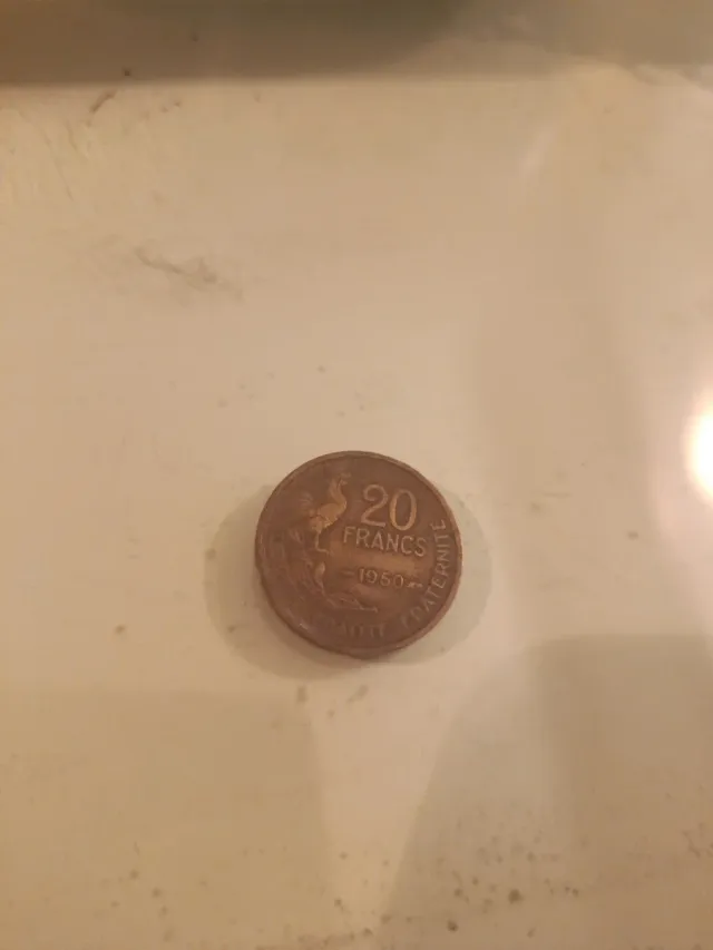 Moneda de 20 francos franceses con el diseño de un gallo. - Año: 1950 - Inscripción: Liberté, Égalité, Fraternité