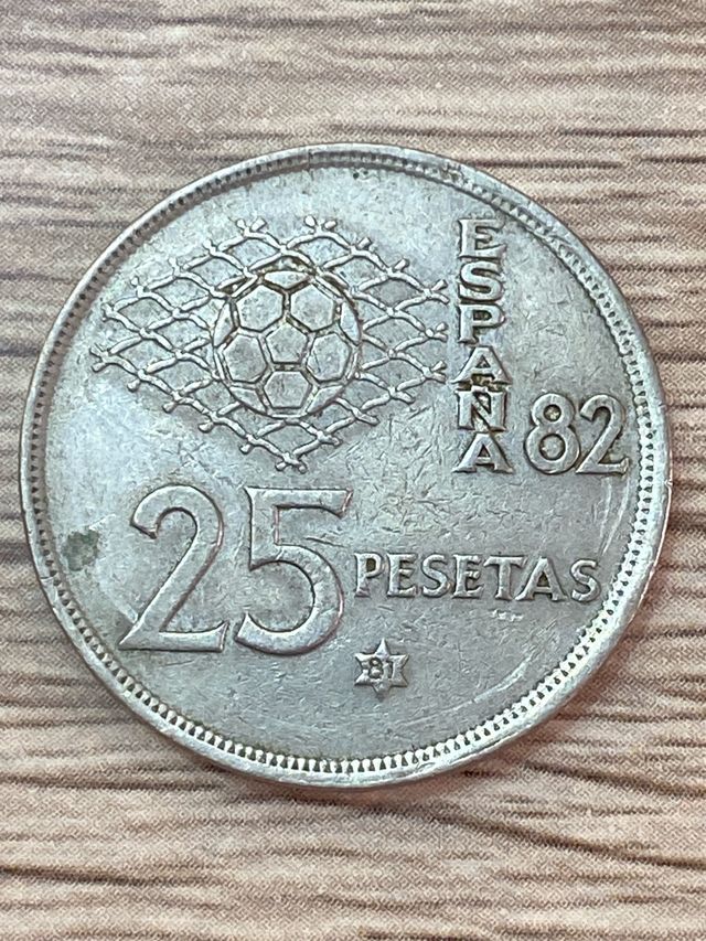 Detalles del productoSe ofrece moneda conmemorativa de 25 pesetas españolas, del año 1982. La moneda muestra un diseño relacionado con el mundial de fútbol de ese año.