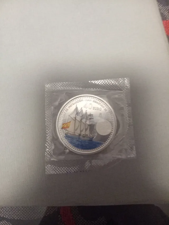 Moneda conmemorativa de 40 euros del año 2025, dedicada a Juan Sebastián Elcano. - Diseño del barco La Nao Victoria.