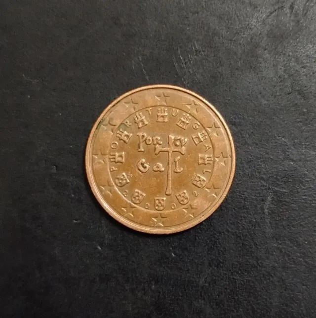 Moneda de 5 céntimos de Portugal. - Diseño con escudo de Portugal. - Inscripción Portugal y 2002.