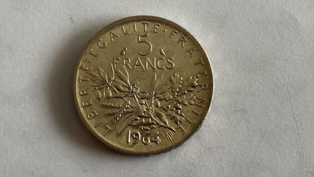 Detalles del productoSe ofrece moneda francesa de 5 francos, acuñada en 1960. La moneda presenta un diseño clásico.